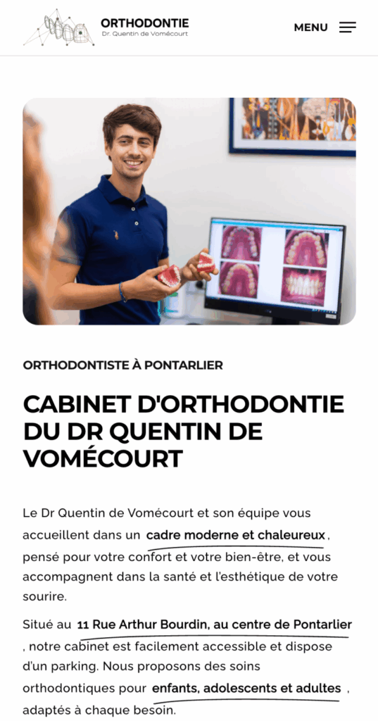 Que vous soyez orthodontiste, chirurgien-dentiste ou implantologue, votre site doit refléter votre expertise… mais aussi votre personnalité.